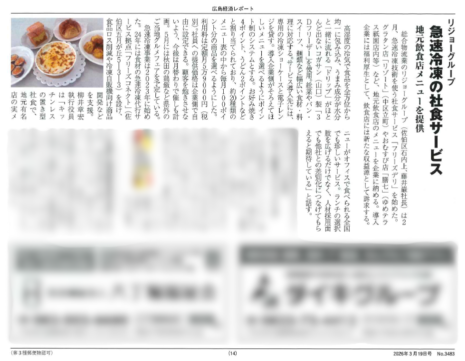 この度、『広島経済レポート』(2026年3月19日号)において、弊社が展開しております